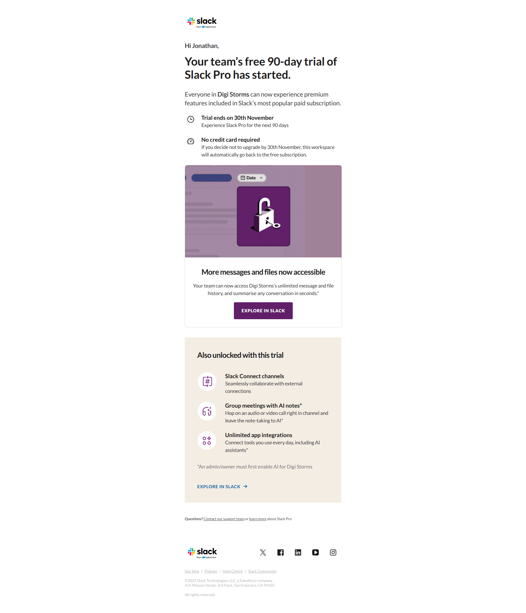 <!DOCTYPE html PUBLIC "-//W3C//DTD XHTML 1.0 Strict//EN" "http://www.w3.org/TR/xhtml1/DTD/xhtml1-strict.dtd"><html xmlns="http://www.w3.org/1999/xhtml"><head><meta http-equiv="Content-Type" content="text/html; charset=utf-8"><meta name="viewport" content="width=device-width, initial-scale=1.0"><link href="https://fonts.googleapis.com/css?family=Lato:400,700,900" rel="stylesheet"><title>Digi Storms has started a free trial of Slack Pro</title><style type="text/css">/* Global Resets */ body, .background_main, p, table, td, div { font-family: 'Lato', 'Helvetica Neue', Helvetica, Arial, sans-serif; } img { border: none; -ms-interpolation-mode: bicubic; max-width: 100%; } p {padding-bottom: 2px;} body { background: #fff; font-size: 17px; line-height: 24px; margin: 0; padding: 0; -ms-text-size-adjust: 100%; -webkit-text-size-adjust: 100%; } table { border-collapse: collapse; mso-table-lspace: 0pt; mso-table-rspace: 0pt; width: 100%; } td { font-size: 17px; line-height: 24px; vertical-align: top; } /* Footer */ .email_footer td, .email_footer p, .email_footer span { font-size: 15px; text-align: center; color: #1d1c1d; } .email_footer a { text-decoration: underline; } .email_footer td {padding-top: 20px;} .footer_logo { width: 40px; height: 40px; padding-bottom: 20px; } .footer_title { font-weight: 900; } .preheader { display: none; mso-hide: all; } /* Typography */ h1, h2, h3, h4 { color: #1d1c1d; font-weight: 700; margin: 0; margin-bottom: 12px; } h1 { font-size: 36px; line-height: 42px; letter-spacing: -.25px; margin-bottom: 28px; text-align: left; word-break: break-word; } h2 { font-size: 24px; line-height: 32px; letter-spacing: -0.75px; margin-bottom: 28px; text-align: left; } h3 { font-size: 18px; line-height: 24px; letter-spacing: 0px; margin-bottom: 0px; } p, ul, ol { font-size: 17px; line-height: 24px; font-weight: normal; margin: 0; margin-bottom: 15px; } ul, ol { padding-left: 40px; } p li, ul li, ol li { list-style-position: outside; margin-left: 5px; } p { font-size: 16px; letter-spacing: -0.2px; } a { color: #1264a3; text-decoration: underline!important; } a:hover {text-decoration: underline;} .button_link::after { position: absolute; content: ''; top: 0; right: 0; bottom: 0; left: 0; border-radius: 4px; } .action_section_workspace_url a[href] { color: #454447; } .action_section_workspace_url:hover { color: #1264A3 !important; } .button_link:hover::after { box-shadow: inset 0 -2px #237c4a; } .button_link.is_secondary:hover::after { box-shadow: none; } .button_link.plum:hover { background-color: #4a154b !important; border-color: #4a154b !important; } .button_link_wrapper.plum:hover { background-color: #4a154b !important; } .button_link.plum:hover::after { box-shadow: none; } .preview_text { color: transparent; display: none; height: 0; max-height: 0; max-width: 0; opacity: 0; overflow: hidden; mso-hide: all; visibility: hidden; width: 0; font-size: 1px; line-height:1px; } .preview_text a { color: #3AA3E3 !important; font-weight: bold; } .sm_visible { display: none; } .footer_padding { padding: 0 50px; } table[class="background_main"] .social_icon_margin { margin-left: 16px !important; } /* Responsive and Mobile Friendly Styles */ /* Yahoo Mail has a history of rendering all media query styles with class selectors unless class is used as an attribute */ @media only screen and (max-width: 600px) { table[class="background_main"] .sm_full_width { width: 100% !important; } table[class="background_main"] .sm_90_percent_width { width: 90% !important; padding: 16px !important; text-align: center !important; float: none !important; } table[class="background_main"] .sm_side_padding { padding-right: 8px !important; padding-left: 8px !important; float: none !important; } table[class="background_main"] .sm_small_top_padding { padding-top: 8px !important; } table[class="background_main"] .sm_top_padding { padding-top: 16px !important; } table[class="background_main"] .sm_auto_width { width: auto !important; } table[class="background_main"] .sm_auto_height { height: auto !important; } table[class="background_main"] .sm_border_box { box-sizing: border-box !important; } table[class="background_main"] .sm_block { display: block !important; } table[class="background_main"] .sm_inline_block { display: inline-block !important; } table[class="background_main"] .sm_table { display: table !important; } table[class="background_main"] .sm_no_side_padding { padding-right: 0 !important; padding-left: 0 !important; } table[class="background_main"] .sm_no_border_radius { border-radius: 0 !important; } table[class="background_main"] .sm_no_padding { padding-right: 0 !important; padding-left: 0 !important; } table[class="background_main"] .sm_os_icons_height { /* this is to make the parent element the same height as the inline-block img inside */ height: 44px; } table[class="background_main"] .small_icon { width: 20px !important; height: 20px !important; } table[class="background_main"] .social_icon_margin { margin-right: 10px !important; margin-left: 0 !important; } table[class="background_main"] .slack_logo_small_icon { width: 80px !important; } table[class="background_main"] .slack_logo_small_icon img { height: 36px !important; } .social_img_bottom_margin { /*this class is for social_user_outreach email only*/ margin-bottom: 20px !important; } .social_p_bottom_margin { /*this class is for social_user_outreach email only*/ margin-bottom: 40px !important; } /* Common responsive styles for new email design templates #feat-activation-email-audit */ .sm_hidden { display: none!important; } .sm_visible { display: inline-block!important; } h1 { font-size: 24px!important; line-height: 30px!important; margin-bottom: 20px!important; word-break: break-word; } h2 { font-size: 16px!important; line-height: 23px!important; margin-bottom: 10px!important; } h3 { font-size: 14px!important; line-height: 20px!important; } .hero_paragraph, .bulleted_list { font-size: 14px!important; line-height: 19px!important; margin-bottom: 20px!i