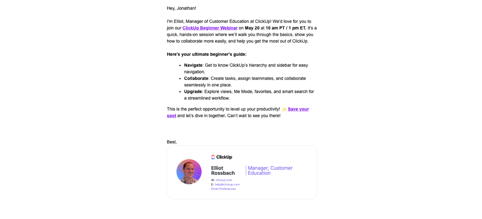 Here's your last chance to join the ClickUp Beginner Webinar! ✨